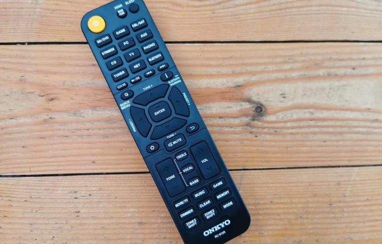 Over de remote gesproken: Onkyo levert een relatief simpele afstandsbediening mee. Dat klinkt als kritiek, maar eigenlijk vinden we het een van de beste remotes beschikbaar. Al is de bouwkwaliteit maar middelmatig, dat wel. Het doet niet alles, maar presenteert minder knopjes net om het gebruiksgemak te verhogen. Waar een Denon-afstandsbediening de complexiteit van een Boeing 747-dashboard presenteert – en je partner uitnodigt om een verkeerd knopje in te drukken – is de Onkyo-remote gewoon heel aangenaam om te gebruiken.