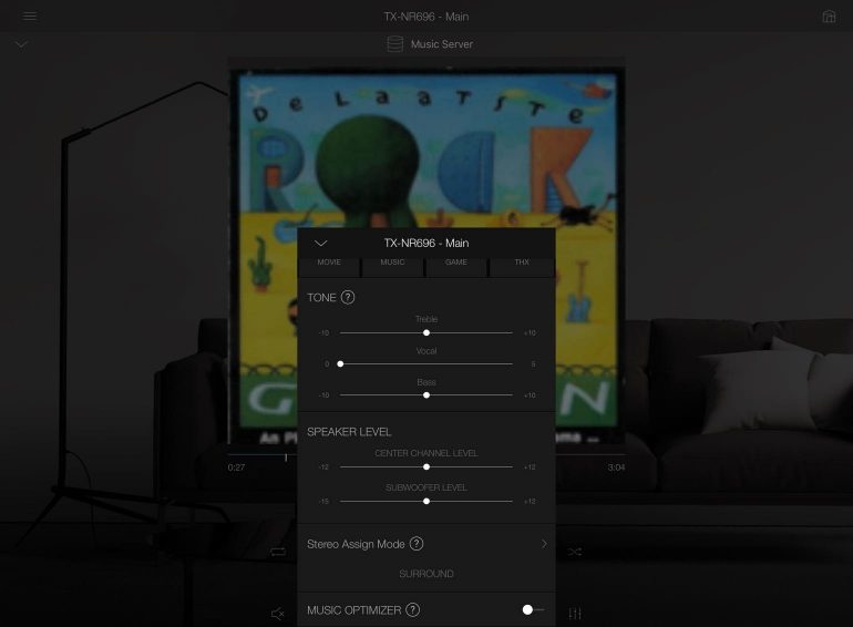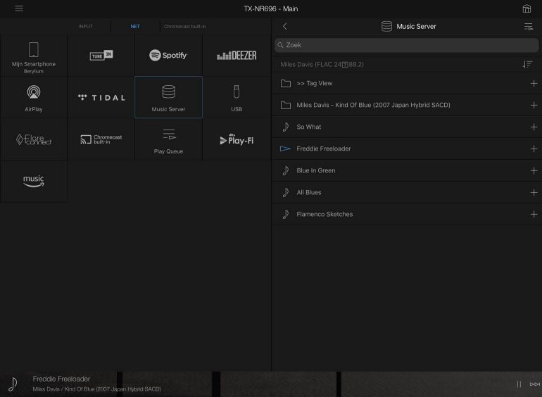 Veel streamingopties aanbieden is een manier om te vermijden dat je als fabrikant inzet op een verkeerde keuze. Het is zoals een gastheer die twijfelt over wat aan te bieden en dan maar een immense feestdis creëert. Aan de gasten om te nemen wat ze willen. Maar: veel keuzes maken het verwarrend. De oplossing van Onkyo is te werken met meerdere apps, waarbij Onkyo Controller de hoofdapp is. Gelukkig is het een zeer heldere app, die volgens ons toch wel een beetje geïnspireerd is op de MusicCast-app van Yamaha. Elk toestel verschijnt in een hoofdscherm als een grote foto (instelbaar, zelfs met een eigen beeld), waardoor de selectie van een kamer eenvoudig wordt. Heb je een receiver met meerdere zones, zoals de TX-NR696, dan toont elke zone als een aparte ruimte. Handig! Je kunt ook per zone een andere bron afspelen, wat niet bij iedereen (zoals Denon) mogelijk is. Gek genoeg kun je niet iets dat speelt op Zone 2 van de receiver via de app naar de hoofdzone brengen. Het is ook niet mogelijk om verschillende muziek te streamen in de twee zones.
