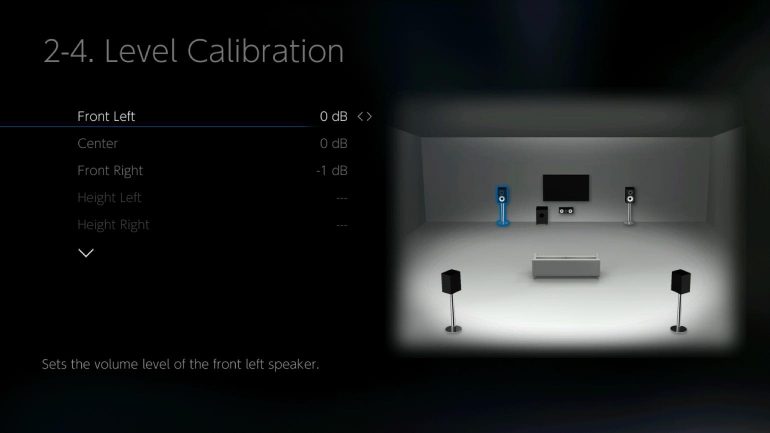 Het is ook niet zo dat de Onkyo-interface infantiel is gemaakt. Bij het scherm waarbij je jouw luidsprekerconfiguratie instelt, zien we voldoende mogelijkheden voor een typische huiskamerinstallatie. Je kunt bijvoorbeeld uit verschillende speakertypes kiezen voor de hoogtekanalen, wat belangrijk is. Een hoogtekanaal ingebouwd in het plafond gedraagt zich anders dan een speaker die hoog op de muur hangt.