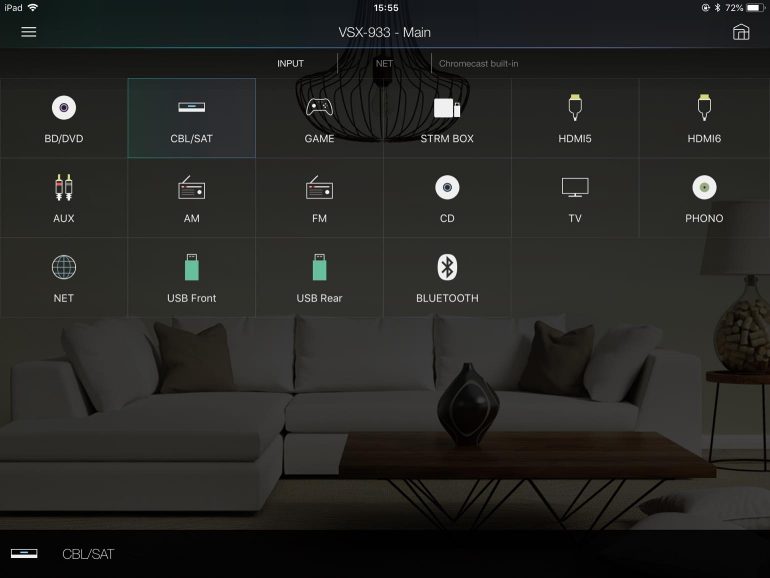 De Pioneer Remote-app doet ons spontaan denken aan de app van Yamaha’s MusicCast. Er zijn nogal wat elementen die vertrouwd overkomen, zoals hoe de verschillende apparaten/kamers met grote foto’s gepresenteerd worden en de manier waarop de verschillende ingangen van de receiver gegroepeerd worden. Het zal wel toeval zijn.
