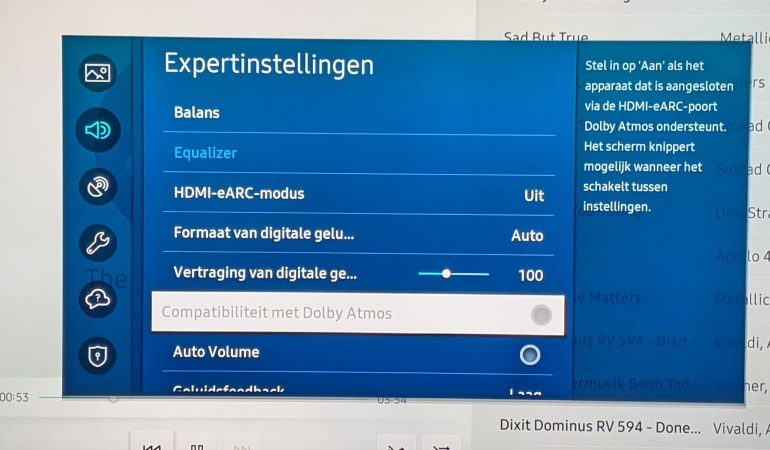 De QE55Q80T (Q80T-serie) maakt indruk met zijn krachtige audio. Het 60W geluidssysteem is in staat om de muren te doen daveren, het volume kan echt erg hoog. Opvallend is dat het toestel er dan ook in slaagt om vervorming tot een minimum te beperken. De intro van Krupa (Apollo 440) was sterk, met een duidelijke high hat en drum. En zelfs onze moeilijkste test, The Struggle Within van Metallica kwam er knap uit. Samsung biedt akoestische tuning van de kamer aan, maar in tegenstelling tot vorige jaren hoef je dit niet meer op voorhand te doen. Zodra je in ‘Algemeen, Intelligente instellingen’ ‘Aanpasbaar Geluid+’ selecteert, voert de Samsung de akoestische aanpassing in real-time uit. Het effect is hoorbaar, probeer het zeker uit.