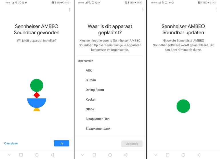 Je gebruikt trouwens ook de Google Home-app om de soundbar de eerste keer te verbinden met het WiFi-netwerk, op precies dezelfde wijze als andere Chromecast-producten. Het is eenvoudig: de Google Home-app detecteert dat er een nieuw apparaat in huis is, waarna je via een paar stappen de soundbar kunt koppelen aan je eigen netwerk. Het gaat allemaal heel vlot en efficiënt.