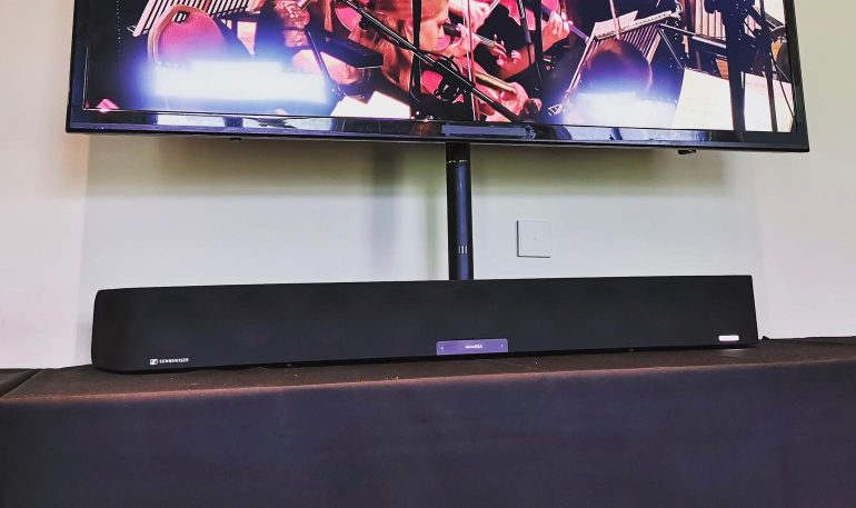 Vooraleer we aan onze test begonnen hebben we de Ambeo Soundbar al in andere settings gehoord. Op beurzen – wat niet zoveel zegt wegens veel omgevingslawaai – maar ook tijdens een lange demonstratie op de EISA Conventie in Antwerpen. Daar maakte de Sennheiser veel indruk door zowel voor- als achteraan in de kamer hoogtekanalen te laten horen. Nochtans was de ruimte niet bepaald akoestisch geoptimaliseerd en waren er ongeveer twintig mensen aanwezig. Lichamen zijn immers ook akoestische objecten en beïnvloeden de klank – en je kunt natuurlijk niet met twintig op de beste luisterplek zitten. Een demo was op de Conventie heel sterk: Sennheiser heeft een voetbalwedstrijd met een Ambeo-microfoon opgenomen, en afgespeeld op de Ambeo Soundbar klonkt het echt als we in het stadion zaten. Niets kunstmatigs aan.