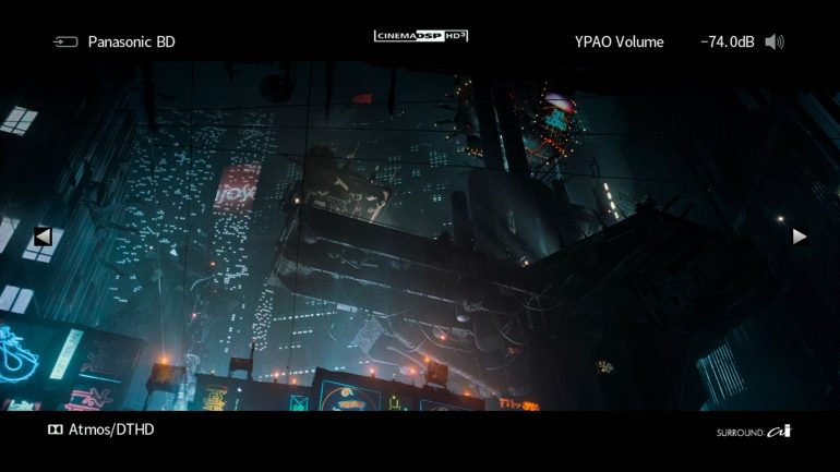 Wel moesten we het volumeniveau van de MusicCast 20-speakers hoger zetten om de speakers beter te laten aansluiten bij de bekabelde speakers vooraan. Dat doet ons vermoeden dat je de MusicCast-speakers niet te ver van je af mag plaatsen. Toch eerder iets voor een gewone woonkamer bijgevolg, maar dat klopt ook bij het concept. Opnieuw: MusicCast Surround is een comfortoplossing, een surroundliefhebber met een eigen bioscoopruimte zal volgens ons toch voor bekabelde speakers kiezen. Zoals we ook merken als we dezelfde RPO-scènes herbekijken met de Boston-speakers, levert een degelijke boekenplankspeaker nog altijd een vollere, gedetailleerde klank. En toch, doorheen Ready Player One – bijvoorbeeld als Parzival en Art3mis naar een nachtclub trekken – zijn we toch onder de indruk over hoe ruimtelijk de surroundervaring wel is met de twee MusicCast 20-speakers. We merken ook dat de Surround:AI-functie in deze opstelling een echte meerwaarde biedt. Je schakelt het best in.