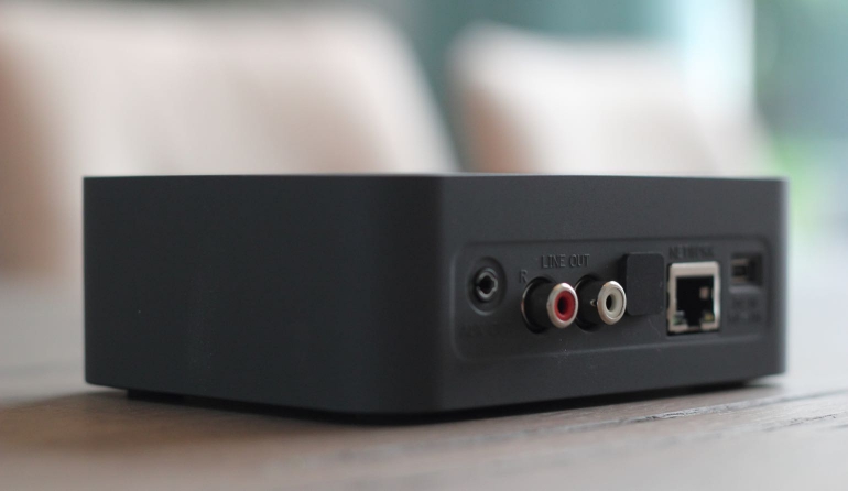 Op het gebied van design is er weinig bijzonders te zeggen over de Yamaha WXAD-10. Het apparaatje ziet er wat saai en simpel uit, maar is klein genoeg om ergens in een kastje weg te stoppen. Daar is de adapter uiteindelijk ook voor; om onzichtbaar zijn werk te doen en je multiroomsysteem aan te sturen. Met de bouwkwaliteit is het goed gesteld, al voelt het apparaat wat licht en ‘leeg’ aan. Op de achterzijde zien we de aansluitingen terug; een ethernetpoort, een RCA-aansluiting, een 3.5mm-poort en een usb-poort voor de lader.
