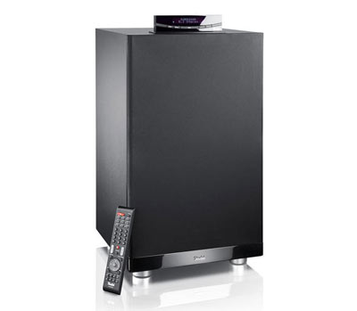 De subwoofer bevat een 6-kanaals versterker, inclusief decoder voor hoge resolutie audioformaten als DTS HD en Dolby True HD, en verschillende aansluitingsmogelijkheden. Het belangrijkste zijn hier de drie HDMI ingangen en één HDMI uitgang met 3D ondersteuning.