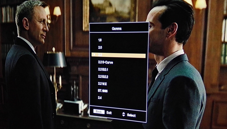 De rec.709 beeldpreset is behoorlijk goed gekalibreerd. De grijsschaal neigt in de lichtste tinten wat naar rood, maar verder is het resultaat prima. De gamma-waarde van 2,4 zorgt voor een prima beeld bij verduistering. De kleurweergave is zelfs uitstekend. Wie toch wat meer licht wenst, kiest voor de Movie of Dark Cinema preset. Die hebben een licht koelere kleurtemperatuur, maar zijn wel flink helderder. De Movie-preset gebruikt een S-gammacurve die contrast benadrukt, de Dark Cinema preset kiest voor beter zichtbaar zwartdetail. Ons advies: kies een van beiden, en pas die aan door de gamma-waarde op 2,2 (iets lichter) of 2,4 (iets donkerder) te zetten. Die preset zal dan op de ‘user’ preset terecht komen, en je kunt dan alterneren tussen ‘User’ en ‘rec709’ om te zien wat je voorkeur heeft.