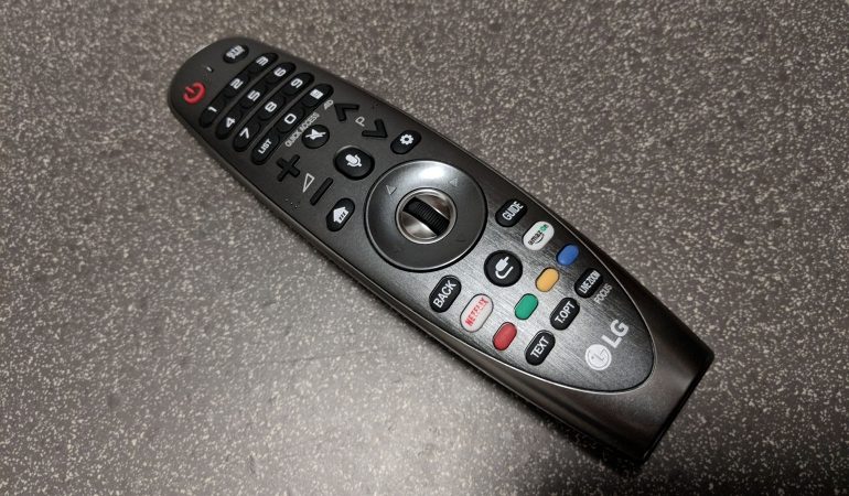 De Magic Remote van LG verdient wat aandacht aangezien hij een essentiële manier is om WebOS te bedienen. De remote kreeg het adjectief Magic omdat je er de cursor op het scherm mee bestuurt gewoon door er naar te wijzen. Dat vergt misschien wat oefening, maar het went snel en is in veel gevallen erg handig.