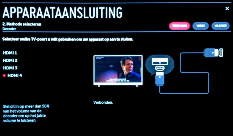 In de volgende stappen accepteer je de gebruiksvoorwaardes en bepaal je hoe je televisie kijkt (via de tuners van de tv en/of via een decoder). Deze stap is enkel beschikbaar als je tijdens installatie Nederland als land kiest. Kies je België als land dan is deze stap (voorlopig) niet beschikbaar.