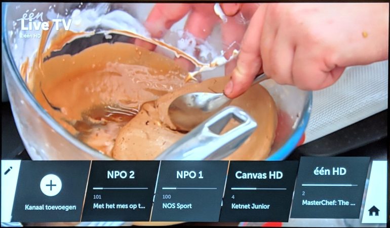 De eerste tegel aan de linkerzijde van het scherm leidt je recht naar je favoriete tv-zenders. Je kunt via ‘Kanaal toevoegen’ kiezen welke zenders er in deze lijst verschijnen. Links bovenaan verschijnt een gelijkaardige tegel voor YouTube. Ook daar kan je favoriete kanalen markeren.
