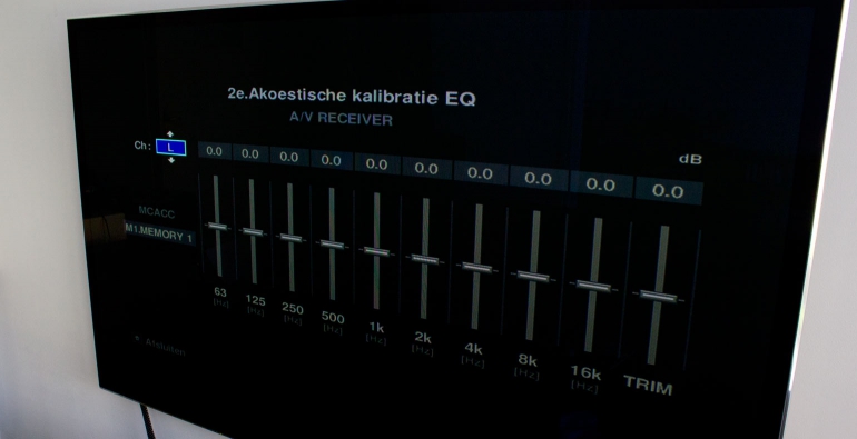 De meest eenvoudige manier om je AV receiver optimaal in te stellen is door gebruik te maken van de automatische kalibratie-functie. Sommige fabrikanten gebruiken Audyssey-technieken om het systeem af te stellen, andere fabrikanten gebruiken een eigen implementatie. Zo heeft Yamaha bijvoorbeeld het eigen YPAO ontwikkeld. Het gebruik en de mogelijkheden komen echter grotendeels overeen. Je plaatst een microfoon op verschillende luisterposities in de kamer – let erop dat je de microfoon op een stabiel statief plaatst en zorgt dat de ruimte stil is – en laat de receiver verschillende testtonen via de luidsprekers afspelen. Voor elke luisterpositie worden specifieke waarden, waaronder de afstand en ‘level’ van de speakers, opgeslagen. Met al deze waarden wordt vervolgens de equalizer automatisch afgesteld voor een optimale weergave in jouw ruimte.