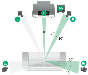 Een 5.1-kanaals home cinema systeem met een 5.1-kanaals receiver is de meest voorkomende home cinema opstelling. In deze opstelling heb je twee speakers aan de voorzijde (links en rechts) die het grootste deel van een soundtrack bij een film weergeven of stereo muziek weergeven. Ook heb je een center speaker in het midden aan de voorzijde die voor de weergave van dialoog zorgt. Achter de luister/kijkpositie bevinden zich links en rechts speakers die de surround effecten tijdens een film weergeven. Natuurlijk kan ook de subwoofer voor de weergave van lage tonen niet ontbreken.