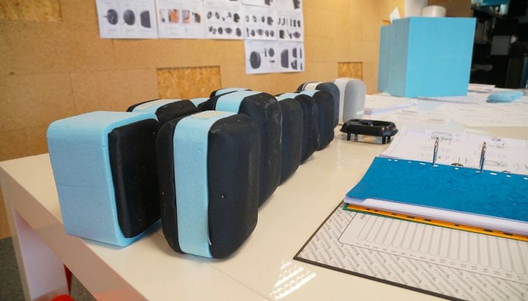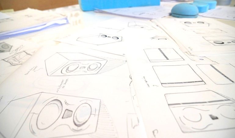 Na de fase met de schetsen volgen nog simpele prototypes die ter plekke uit kunststof worden gesneden en samengesteld. Charles toont ons zo hoe de vorm van de kleine Mass-kubussen toch eerst in de praktijk moest beleefd worden. Het MA-designteam heeft zijn werk blijkbaar goed gedaan, want de vernieuwde Mass-speakers die in een 5.1-pakket verkocht worden zijn een enorm succes gebleken. “Het gaat veel harder dan we verwacht hadden”, zegt Minett, op een manier waaruit blijkt dat hij zelf bijna niet gelooft. Dit is ook het punt waarop er over heel praktische zaken wordt nagedacht, zoals hoe een luidspreker kan opgehangen worden of het kabelmanagement. Soms worden minder simplistische prototypes gemaakt met 3D-printing, onder meer door een firma in België.