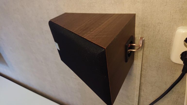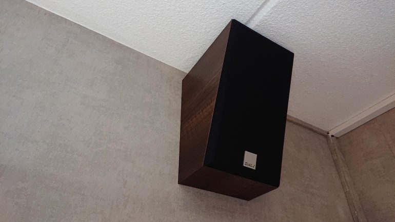 Deze situatie zal vast persoonlijk zijn, maar omdat de aansluitterminals aan de kant zitten die boven aan het plafond zit, is het vrij lastig om het geheel goed aan te sluiten. Je moet de luidspreker met één hand vasthouden (of dit iemand anders laten doen), dan de kabel aansluiten en dan de luidspreker op de schroeven hangen. Ook kan de luidspreker nooit strak tegen het plafond, omdat de kabel er nog tussen moet passen. De grootste tip aan Dali is dan ook om de luidsprekers in het vervolg te voorzien van een soort gootje zodat je de kabel eventueel binnendoor naar de achterkant kunt leiden. Ach, dat zijn kleine ergernissen, zodra de luidsprekers even hangen en ik een douche heb genomen om het klus-zweet af te spoelen, zijn de frustraties alweer verdwenen.