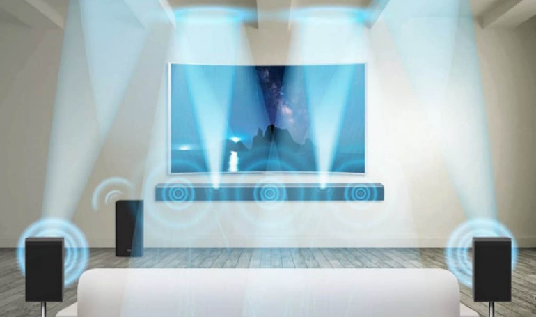 Een soort soundbar die we uit willen lichte als we het hebben over surround-sound is de Digital Sound Projector. De DSP is een product van Yamaha en kost ook wat meer dan de gemiddelde soundbar. Deze speakers beschikken over tientallen kleine speakers met eigen versterker, die speciaal ontwikkeld en geplaatst zijn om gerichte audiokanalen de ruimte in te sturen. Yamaha heeft het idee van reflecties en weerkaatsingen goed onder de knie en weet met dit systeem een relatief goede surround-sound te creëren.