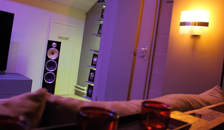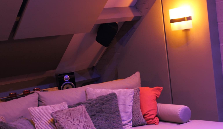Zorg dat kabels netjes weggewerkt worden en plaats waar nodig kabelgoten. De verlichting is natuurlijk ook een belangrijk onderdeel van de thuisbioscoop dus kijk goed naar welke sfeerverlichting je wilt gebruiken en hoe je deze wilt aansturen. Je kunt gebruikmaken van slimme verlichting waardoor je zelf kleuren kunt aanpassen, de verlichting met een app kunt bedienen en je verlichting met andere apparaten kunt laten communiceren.