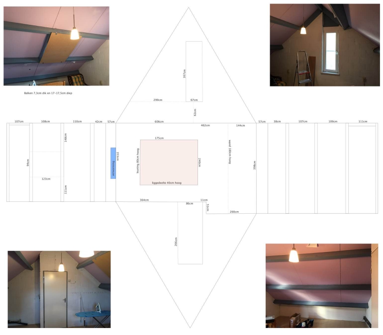 In het vorige artikel hebben we het gehad over de bank die we zelf wilden gaan maken van pallets en kussens. Dit idee zag er op papier zeer goed uit, en was kostentechnisch ook interessant, maar door een foutje in de plattegrond werd over het hoofd gezien dat de deur ook nog open moest kunnen. Dus dat idee wordt de komende dagen nog eens onder de loep gehouden. In een artikel over de meubels en inrichting komen we hierop terug.