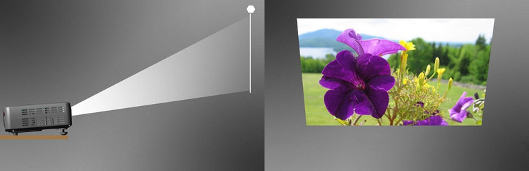 - Heb je geen of niet voldoende lensshift, dan moet je de projector kantelen en heb je keystone-correctie nodig. Probeer echter eerst na te gaan of je de projector niet kan verplaatsen.