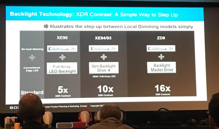 De rest van de 2017 lcd led tv line-up van Sony is compleet vernieuwd. De XE93 (65-inch en 55-inch) en XE94 (75-inch) zijn de vervangers van de XD93 en XD94. De 55-inch en 65-inch XE93-modellen komen met een edge lit led-systeem, de 75-inch XE94 beschikt over een full array led-backlight (leds direct achter het paneel). Deze modellen maken gebruikt van de Slime Backlight Drive +-techniek, wat een iets mindere techniek is dan de Backlight Master Drive-techniek die we in de ZD9-serie terugzien. Sony belooft dat de XE94 dit jaar meer helderheid en een groter kleurbereik verzorgt. De XE93 is dit jaar voorzien van led-strips boven en onder het paneel, waar ze vorig jaar nog aan de zijkanten te vinden waren. Volgens de Japanse fabrikant zorgt dit voor meer controle, een hogere helderheid en een beter contrast.