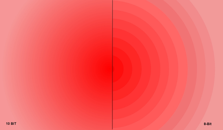 Waarom worden we nu om de oren geslagen met 10- en 12-bit kleur? Onze televisies en computermonitoren gebruiken al vele jaren 8-bit kleur. Dvd, Blu-ray en televisie-uitzendingen zijn gecodeerd met 8 bits per kleur. Zijn die 16,7 miljoen kleuren dan niet genoeg? Voor heel wat beelden is dat voldoende, maar ons oog is erg gevoelig voor graduele veranderingen in helderheid en kleur. In zeer zachte kleurovergangen van de ene naar de andere kleur, kan het zijn dat het display niet genoeg stappen heeft om die overgang te maken zonder zichtbare kleurbanden (vandaar dat we het probleem ‘banding’ noemen). Vroeger, op onze ‘kleine’ 32 inch televisies, was dat zelden een probleem. Maar nu is een 55 inch televisie geen uitzondering meer. En de gradiënt die je op je oude 32 inch-tv als perfect waarnam omdat je er zo ver van af zat, is op een 55 inch scherm en op dezelfde kijkafstand in veel meer detail te zien, en daardoor zie je soms banding.
