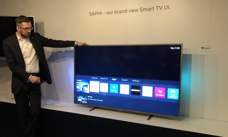 Saphi wordt geïntroduceerd op alle Philips 2018 Smart tv’s met Linux als besturingssysteem evenals op de Full HD-sets in de 5000-serie tot en met de 6000-series met UHD, HDR en driezijdig Ambilight.