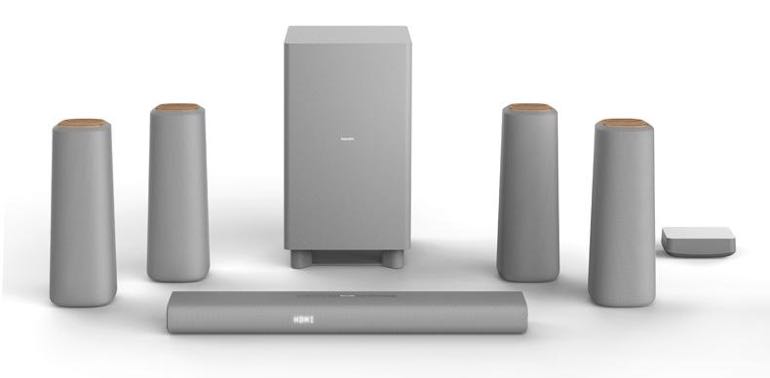 Daarnaast introduceerde Philips tijdens CES de nieuwe Fidelio B5 soundbar en de HTL7140 soundbar met draadloos subwoofer. Deze laatstgenoemde set moet dankzij een 5.1-kanaals geluid en Ambisound-technologie een breder geluidsveld bieden. Een compleet nieuwe lijn is de Philips Zenit (hierboven afgebeeld), bestaande uit speaker die het maximale uit je entertainment-bronnen moeten halen. Het Zenit-systeem beschikt over de nieuwste technieken als HDMI (met 4K) en bluetooth, en een nieuw design. Er komen twee varianten; de CSS5330 met een center speaker, twee satelliet-speakers en een draadloze subwoofer, en de CSS5530 met twee extra draadloze speakers voor de achterzijde.