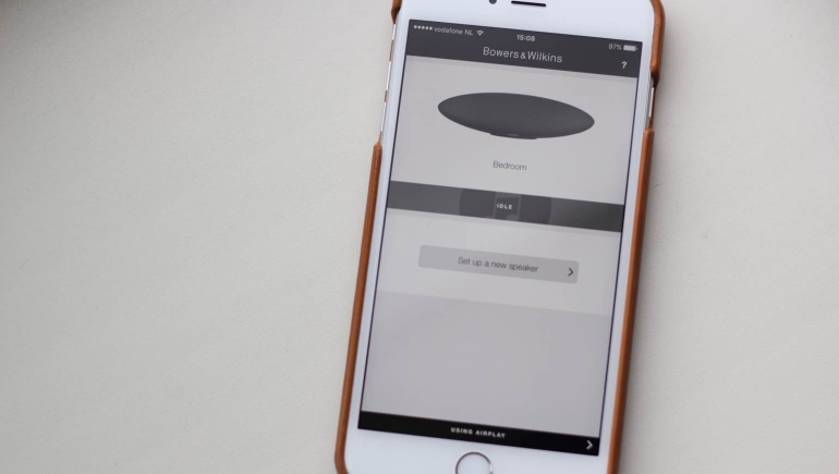 Dan is er nog de Bowers & Wilkins Control-app maar daar valt vrij weinig interessants over te melden. Je kunt hier speakers toevoegen en direct kiezen uit Bluetooth, AirPlay of Spotify Connect, je kunt de speaker aan een ruimte toewijzen en de netwerkinstellingen bekijken. Maar, afgezien van wellicht de set-up zul je deze app niet veel hoeven gebruiken. Je krijgt de speaker immers vanzelf te zien binnen de Spotify-app, je AirPlay-apparaten en je Bluetooth-apparaten.