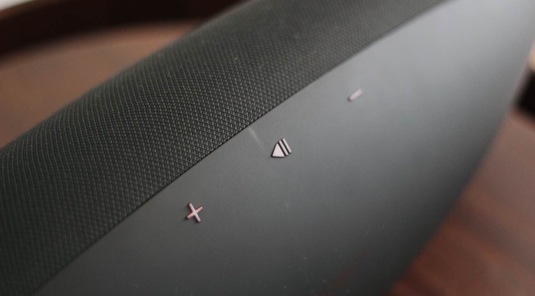 Op de achterzijde van de Zeppelin Wireless zijn overigens ook nog drie touch-knoppen te vinden. Hiermee kun je de muziek afspelen of pauzeren en het volume wijzigen. Ook hier is weinig bijzonders aan en de functies spreken voor zich.