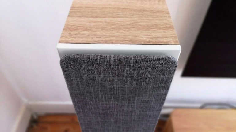 Op afstand zien de Oberons in Light Oak er in elk geval bijzonder knap uit. Duurder en luxer dan je zou verwacht. Leg je jouw hand op het fineer, dan merk je wel dat het een laag op stevig MDF is. De kasten zijn heel solide, daar niet van, maar het reliëf van het fineer voelt niet helemaal natuurlijk aan. Maar je moet de speakers echt aanraken om dit te merken. Zelfs van op korte afstand zien de luidsprekers er gewoon heel knap uit.
