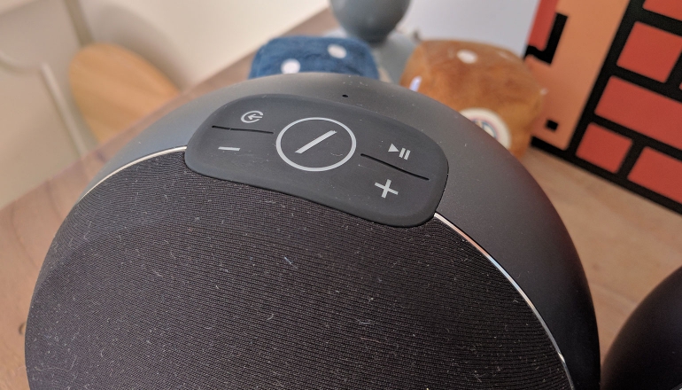 Beide speakers hebben op de bovenkant een aantal knoppen zitten. De meest opvallende knop is de Link-knop: dat is dat grote ronde ding met die schuine streep erin. Daarmee kun je bijvoorbeeld van muziekbron wisselen. Ook zien we een plus- en minknop en een knop waarmee je de muziek kunt pauzeren en aanzetten. In principe kun je het gros van de functies met die knoppen bedienen: maar wil je de volume wijzigen, dan zul je dit toch echt via software moeten doen. Hetzij via een app of via een besturingssysteem als Windows 10.