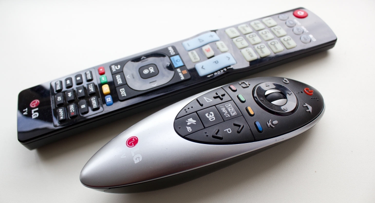 De televisie wordt geleverd met twee afstandsbedieningen. De eerste is een vrij standaard model dat je tegenwoordig bij elke tv krijgt. De afstandsbediening beschikt over knoppen voor alle belangrijke functies en is compleet uit plastic vervaardigd. De belangrijkste knoppen, waaronder de nummer-toetsen geven licht in het donker, wat altijd een plus is. Interessanter is echter de Magic Motion Remote die meegeleverd wordt. Deze afstandsbediening beschikt over een stuk minder knoppen maar maakt het wel mogelijk de tv middels spraak en een cursor te bedienen, waarover later meer. De Magic Remote is een stuk fraaier vormgegeven, ligt goed in de hand en voelt ook hoogwaardiger aan dan de standaard afstandsbediening. Naast deze twee opties biedt LG ook de mogelijkheid de tv te bedienen middels de Remote-applicatie voor smartphones en tablets.