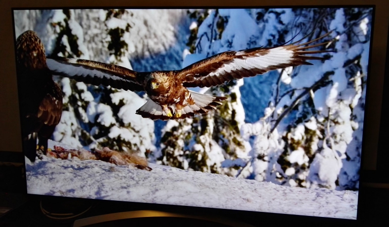Met die basiswaardes kan de LG SJ850V geen spetterende HDR-beelden leveren, maar de impact van HDR is nog steeds goed zichtbaar. Het hoeft niet te verrassen dat je in donkere maar zeer contrastrijke scènes wel de limiet ziet van wat mogelijk is met IPS, edge led en local dimming. Om de vereiste luminantie te halen moet de lichtsterkte sterk omhoog, waardoor de zwartwaarde van het IPS-scherm sterk onder druk komt. In dergelijke scènes zijn zichtbare verticale segmenten niet uit te sluiten, al doet LG zijn best om dat zo goed mogelijk te camoufleren.