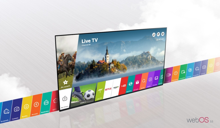 WebOS, het smart tv-systeem van LG is ondertussen aan versie 3.5 toe. De speelse maar erg handige interface blijft een van onze favorieten. In dagelijks gebruik vind je alles op het Home –scherm terug, dat de vorm neemt van een lint onderaan het scherm met iconen voor alle bronnen op het toestel, van live tv tot externe ingangen en internet toepassingen.