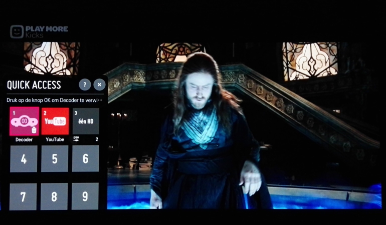 Een van de beste nieuwe functies in WebOS 3.5 is ‘Quick Access’. Daarmee selecteer je een bepaalde bron, ongeacht of dat een externe ingang of internettoepassing is, door lang op een van de nummertoetsen te drukken. Druk lang op ‘0’ om het menu met alle snelkeuzes te zien, en die kan je uiteraard eenvoudig aanpassen.