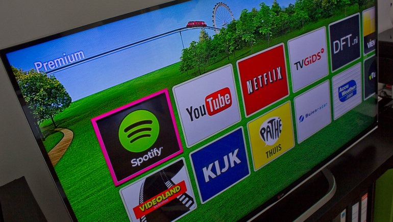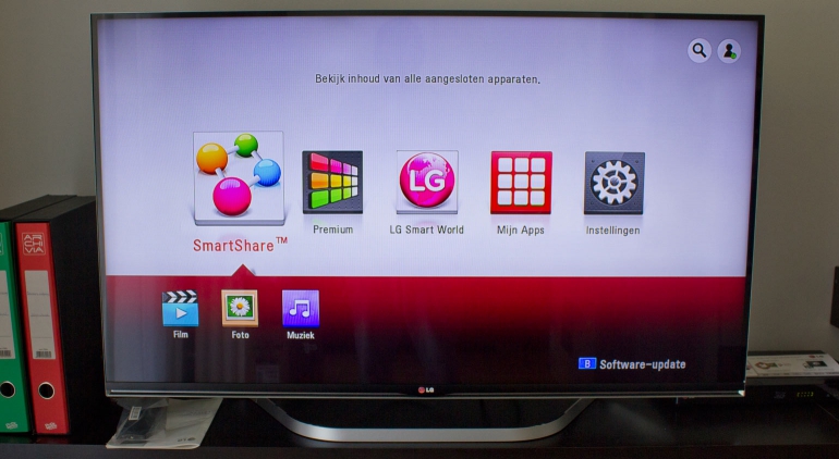 Je komt als je de speler opstart direct in het homescreen terecht waar je vijf grote icons te zien krijgt; Instellingen, Mijn Apps, LG Smart World, Premium en SmartShare. De eerste is duidelijk, de tweede en derde en vierde verdienen wat uitleg. Bij Mijn Apps krijg je een overzicht van de applicaties die je binnen LG Smart World geïnstalleerd hebt en in LG Smart World Kun je op zoek naar apps. Maar, binnen Premium vind je de belangrijkste of grootste apps, waaronder NOS, Spotify, YouTube, Videoland en Netflix. Helaas ontbreekt de app voor Uitzending Gemist maar het aanbod aan apps is voor de Nederlandse gebruiker interessant genoeg om je niet snel te vervelen. Zoals hierboven aangegeven zorgen de grotere en zwaardere apps helaas voor flinke laadtijden en trage reactietijden.