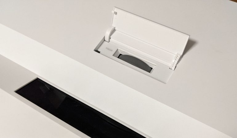 Die extreem korte projectieverhouding heeft wel drie belangrijke gevolgen. Ten eerste, het kleinste beeld dat je kunt projecteren heeft een 90 inch beelddiagonaal (ongeveer twee meter breed). Wie dus geen twee meter breedte beschikbaar heeft moet naar een ander model uitkijken. Een tweede gevolg is dat, wanneer je op een 90 inch beeld mikt, de achterzijde van de projector op nauwelijks vijf centimeter van de muur staat. De aansluitingen zijn op dat moment erg moeilijk bereikbaar, vooral omdat je de projector, eens geïnstalleerd, best niet meer verplaatst. Plug dus eventueel een extra HDMI-kabel en/of USB-verlangkabel in als je af en toe iets anders wilt aansluiten.