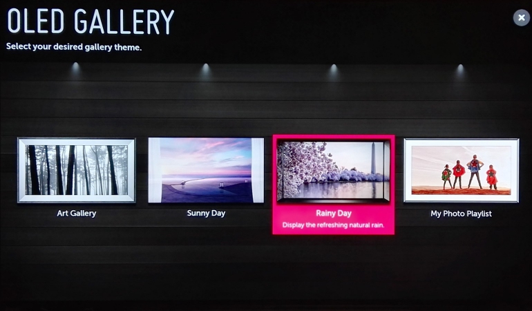 Kijk je geen tv, dan hoef je het scherm niet zwart te laten. Om maximaal te genieten van je scherm is er de ingebouwde OLED-gallerij. Dankzij deze functie zie je een selectie kunstwerken, of geniet je van het uitzicht op een regenachtige of zonnige dag. Natuurlijk kan je ook je eigen foto’s selecteren, en de C7 omtoveren naar een reuzegroot fotokader.