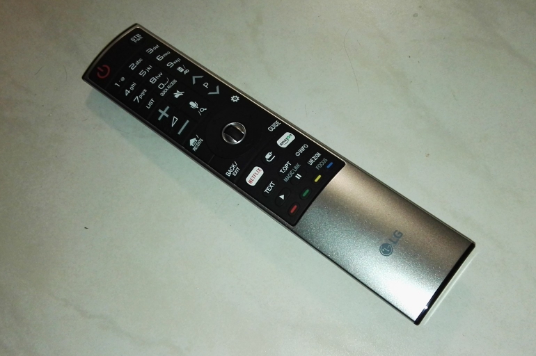 De Magic Remote is al jaren een vast onderdeel bij WebOS. Niet alleen functioneert hij als een traditionele zapper, maar door hem naar het scherm te richten bestuur je er ook een cursor in beeld mee. Dat maakt het erg handig om dingen te selecteren in de interface.