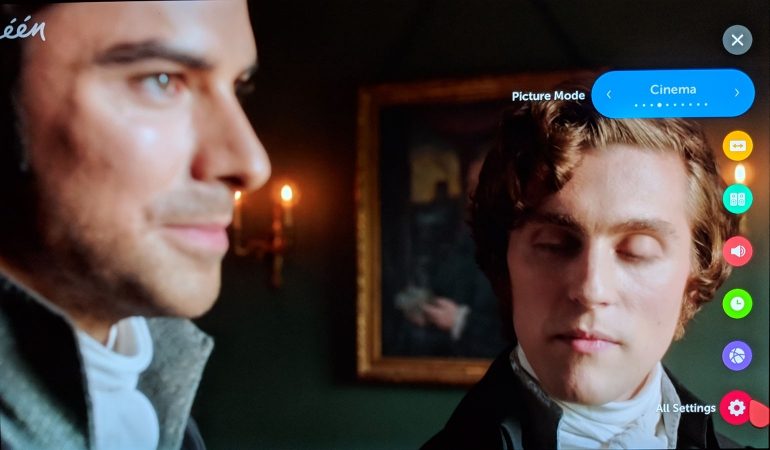 De menu’s bereik je nog steeds in twee stappen. Een druk op de knop voor instellingen brengt je naar het Quick Menu waar je onder andere snel de beeld- en geluidsmode kunt aanpassen. Vandaar ga je naar de algemene instellingen, waar je alle instellingen vindt. Ten opzichte van vorig jaar zijn er enkel een paar kleine, organisatorische veranderingen.
