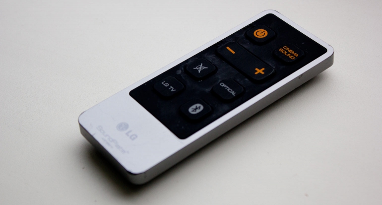 LG levert een verrassend compacte afstandsbediening mee die ook weer in het teken staat van eenvoudig. Dit model beschikt over maar acht knoppen en daarmee kun je ook alles doen wat de SoundPlate biedt. De afstandsbediening ziet er netjes afgewerkt uit en ligt daarbij ook nog eens goed in de hand. Nadeeltje is dat je met deze afstandsbediening niet de tv kunt bedienen, dat is immers de beperking van een optische aansluiting.
