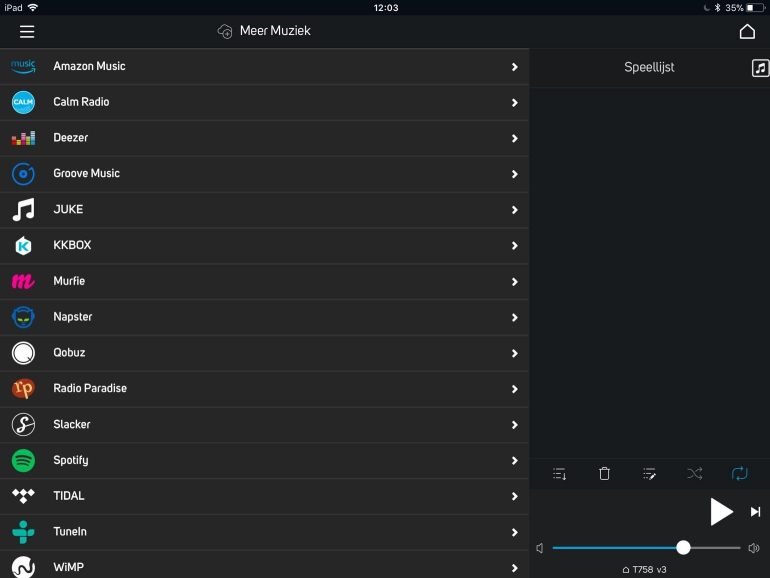 Bluesound begon ooit als een soort audiofiel alternatief voor Sonos en eigenlijk past die beschrijving nog altijd goed bij het platform. Het is wel enorm geëvolueerd, maar de nadruk ligt toch altijd op een betere geluidsweergave. Het is via de Bluesound-app dat je de T 758 v3 qua streaming bedient. Er is nog een andere app (NAD A/V Remote) waarmee je volume kunt regelen, ingangen schakelen en instellingen aanpassen. Echt mooi is die app niet, al helemaal niet op een iPad, wegens niet geoptimaliseerd voor tablets. Als je dat kunt negeren, dan zul je ontdekken dat de A/V Remote nog wel bruikbaar is.