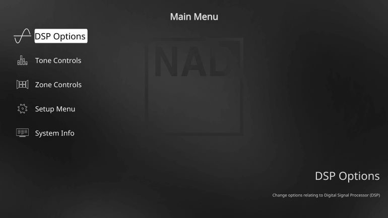 Er is niets echt complex of ingewikkeld aan de NAD-interface. Het toont zich soms wel wat eigenzinnig. Zo vloekten we regelmatig op het feit dat je door opties navigeert met pijltjestoetsen op de remote, maar de centrale ‘Enter’-knop niet bevestigen betekende – maar verspringen naar de volgende optie. Een optie van waarde veranderen is dan soms rechts duwen, maar soms ook boven of onder. Dat is zo tegen conventie in dat zelfs na dagen testen we hier zonder nadenken altijd de verkeerde actie stelde. Als je vlug iets aan het zoeken bent, kun je snel onbedoeld iets in- of uitschakelen. Dit is iets dat NAD toch even moet herbekijken; het oplossen (lees: gebruiksvriendelijker maken) moet met een software-update mogelijk zijn.