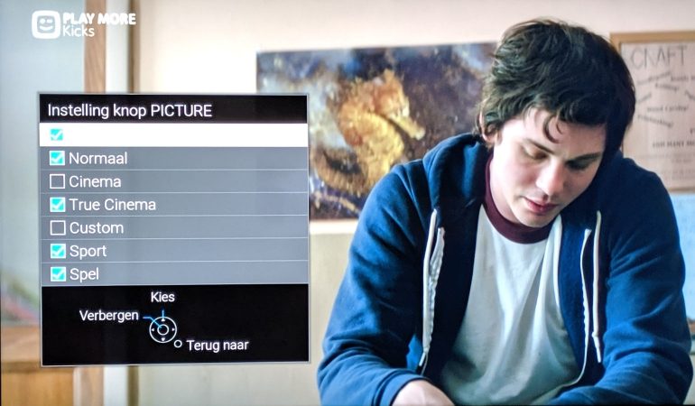 Een handige tip is de de beeldmodetoets bovenaan, rechts naast de on/off-toets. Via Menu, Beeld, Instellingen Knop ‘Picture’ kan je instellen welke beeldmodes via deze toets gekozen kunnen worden. Dat is de snelste manier om een aangepast beeldmode te kiezen.