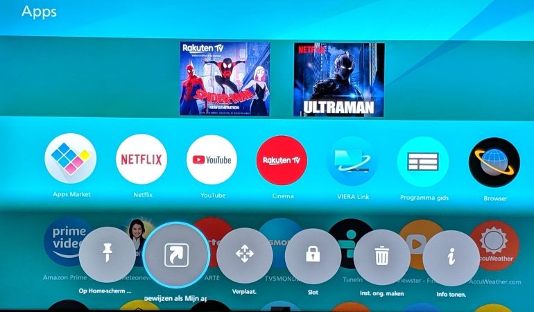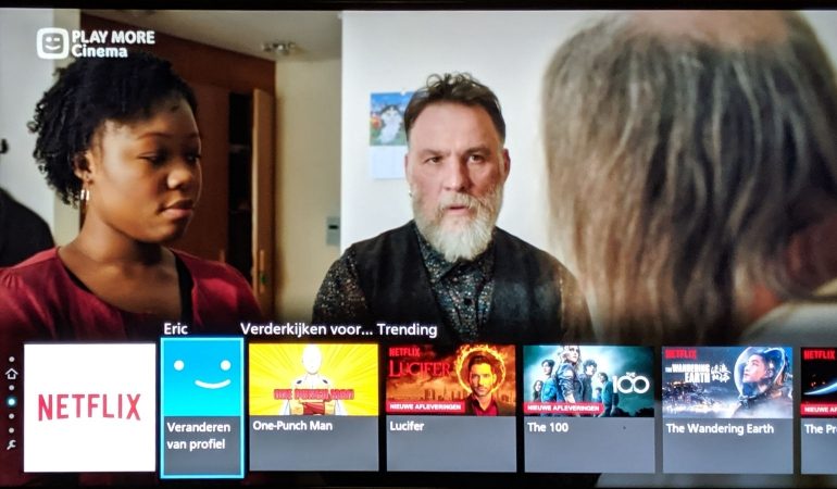 De smart tv omgeving daarentegen is bijzonder handig en overzichtelijk. De Home-toets toont een lijst met mogelijkheden onderaan het het scherm, in een balk. Aanvankelijk vind je hier een icoon voor alle ingangen, de live tv zenders en de apps. Ook de iconen voor Netflix, YouTube, en Amazone Prime Video waren vooraf geïnstalleerd. De interface neemt weinig plaats op het scherm en je kunt ongestoord verder kijken.