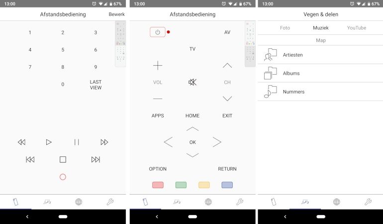 Wie zijn smartphone als remote wilt gebruiken installeert de app ‘TV remote 3’. Die app is echter beperkter dan de vorige versie, zo kan je in deze app bijvoorbeeld niet het beeld van de ingebouwde tuners bekijken. Gelukkig kan je nog steeds de oude app ‘TV Remote 2’ gebruiken.