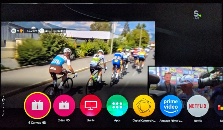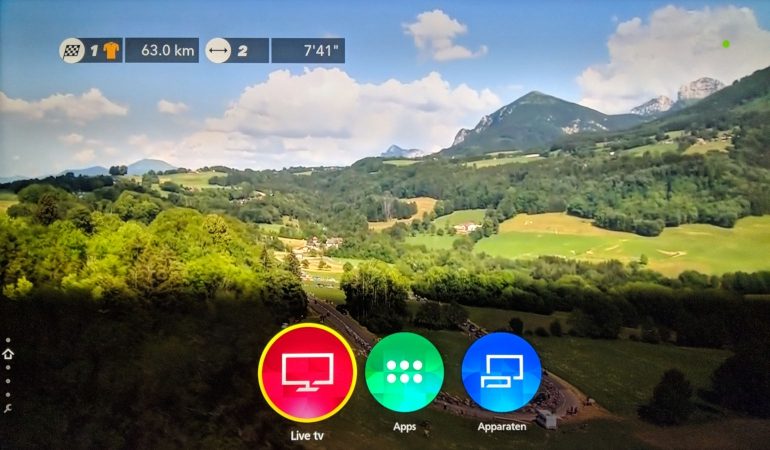 In de vorige versie nam het Home scherm het volledige beeld over. De drie gekleurde cirkels voor live tv, apps en apparaten zijn gebleven, maar verschijnen nu onderaan het beeld. Dat is meer in lijn met wat Samsung en LG doen, en geeft een modernere, minder opdringerige indruk. Je kunt gewoon verder kijken terwijl je in de balk onderaan dingen doet.