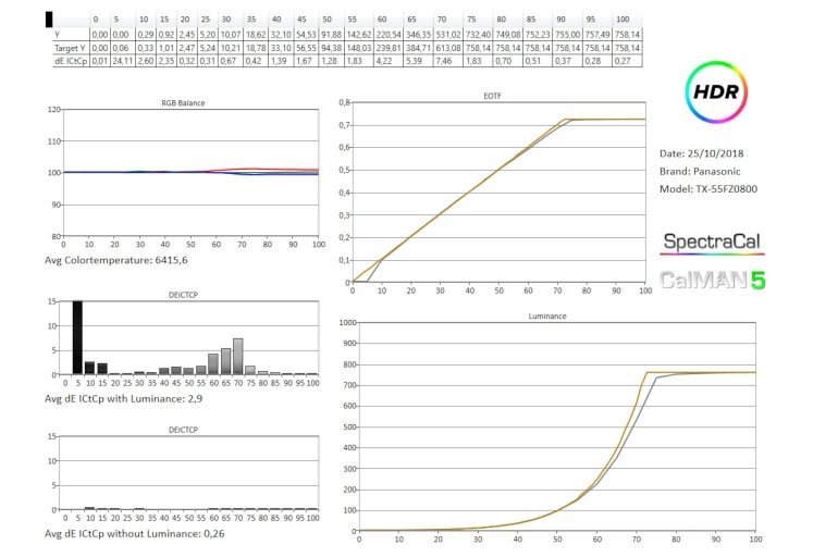 De TX-55FZW804 kan ook automatisch gekalibreerd worden met behulp van Portrait Displays Calman.