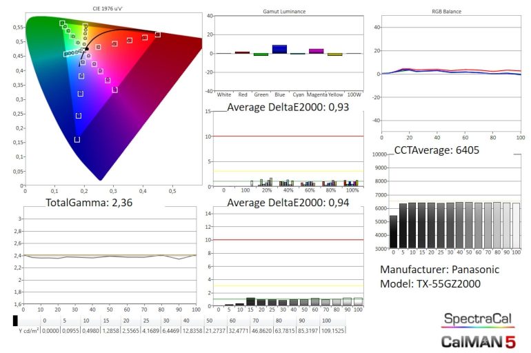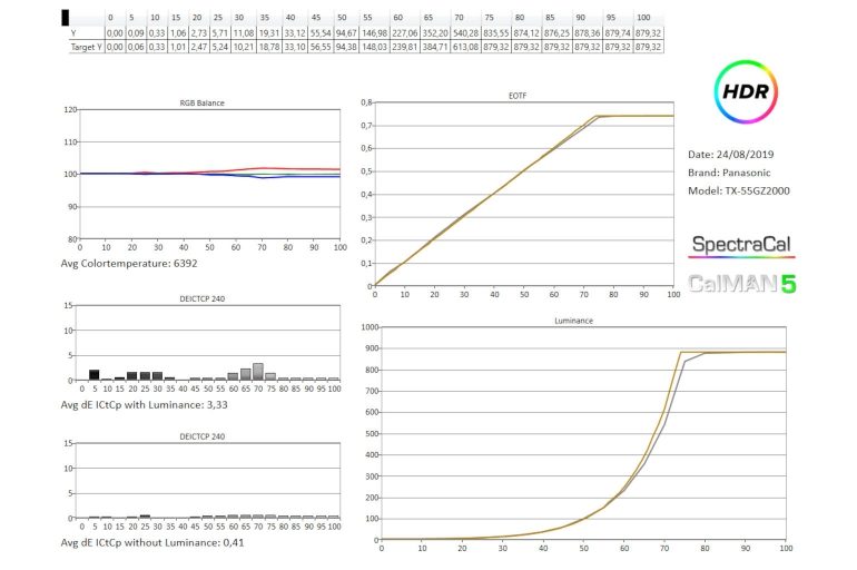 Ook op de TX-55GZW2004 schakel je naar THX Cinema voor de meest accurate beeldresultaten. De grijsschaal en de kleurweergave zijn zo goed als perfect met fouten onder de 1 (niveau van een studiomonitor). Alle kleurtinten worden nauwkeurig weergeven, en huidskleuren zijn mooi natuurlijk. Het scherm heeft een uitstekende uniformiteit, en levert uitmuntend zwartdetail.