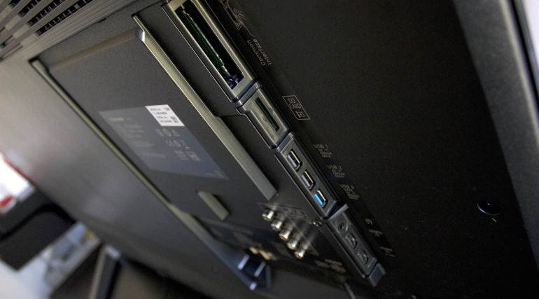 Wat betreft de aansluitingen krijg je alles dat je nodig hebt om je apparatuur te koppelen. De DXW904-modellen beschikken over een grote klep aan de achterzijde waarachter zich alles bevindt. Twee hdmi-poorten wijzen naar onderen, twee hdmi-poorten wijzen naar de zijkant, een optische uitgang wijst naar onderen en aan de zijkant zien we nog drie usb-poorten en de CI+-module terug.