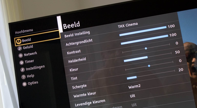 Voordat we een tv uitgebreid testen met diverse media kijken we altijd naar de meest optimale instellingen, zonder een tv professioneel te moeten kalibreren. Kortom; hoe halen we snel het meeste uit de beeldweergave van dit model? Gelukkig worden fabrikanten steeds beter met de standaard modi waar je uit kunt kiezen en vanuit de doos kun je bij Panasonic het beste voor de THX Cinema-modus kiezen. Deze modus zorgt voor een natuurgetrouwe kleurweergave, diepe zwartwaarden en voldoende helderheid. Het is het beste compromis in veel gevallen.